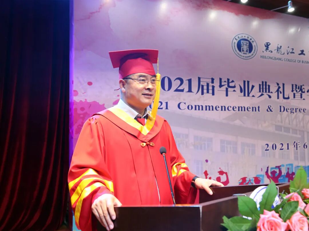 校长刘来祥深情寄语毕业生,并提出了四点希望:希望同学们继续加强写作能力的提高和培养;希望同学们勇于接受改变,积极拥抱新事物、新观念;希望同学们忘我工作,埋头苦干,以青春之我,接续奋斗,凯歌前行;希望同学们,心怀祖国壮阔山河,积极主动融入国内大循环。