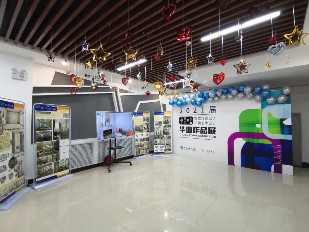 图说:6月1日,艺术与传媒系2021届“梦想·盒”毕业设计作品展正式在松北校区第二教学楼八楼艺术展厅展出。本次毕业设计展共展示了视觉传达设计、环境设计两个专业的1000余件(幅)毕业设计作品。同学们以“融合”、“创意”、“实践”、“认知”为创作方向,将传统的“外师造化,中得心源”艺术理论融入到艺术实践创作中,充分展现了蓬勃生机的艺术创造力和我校艺术与传媒类专业的“德艺并举,产教融合”办学特色。