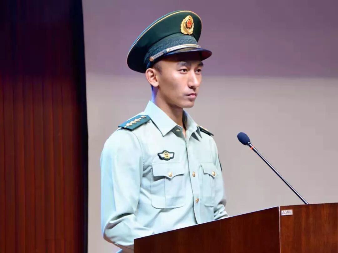 注:每年9月,马明都要承担着军训任务,图为马明代表军训教官发言。