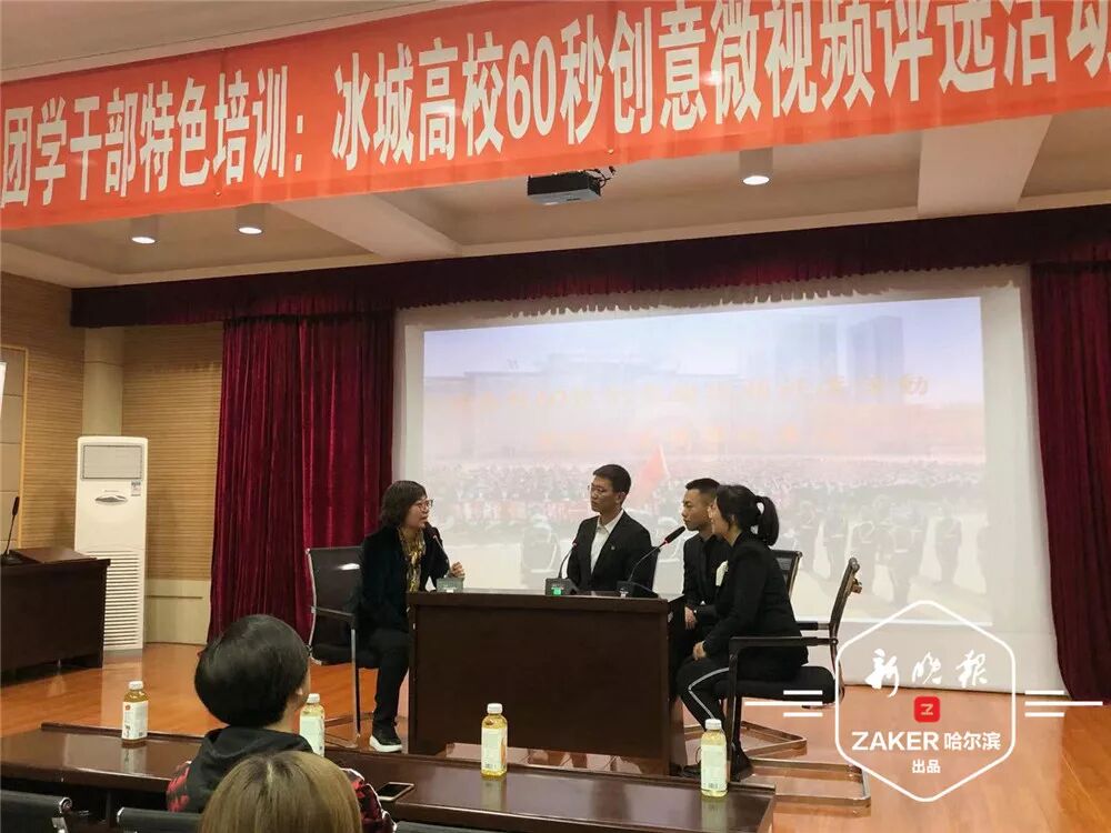 我们总结凝练“读、写、讲、用”四维一体的文化育人模式,紧密开展读写“校训校风、革命家书和爱国主义诗词”系列活动、“青春心向党“千人诵读、”小我融入到大我”国旗下的告白、大学生宣讲团主题宣讲、“青春献给祖国”文艺汇演、冰城高校 “60 秒创意微视频”路演进校园等系列文化实践活动,涵育德行、滋养心灵,大力唱响礼赞新中国、奋进新时代的旋律。