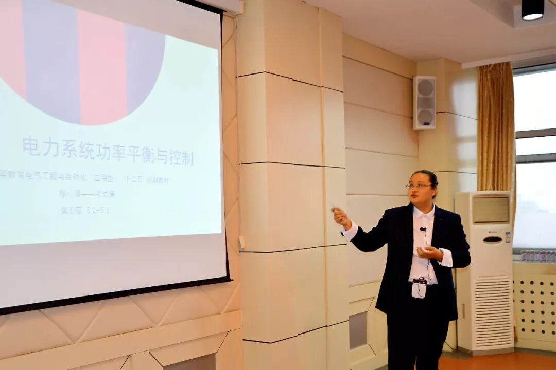 注:我校“教师教学方法改革及教学技能大赛”一等奖获得者张丽英在做观摩示范课程