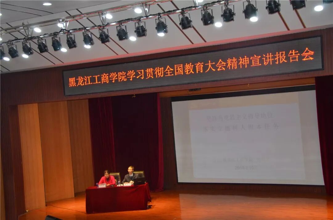 2018年10月17日,学院党委在全省高校率先举行学习贯彻全国教育大会精神宣讲报告会,省教育厅“学习全国教育大会精神百人宣讲团”成员、学院党委书记徐德荣同志为学院党委中心组成员、全体教职工和学生党员作了题为《坚持马克思主义指导地位,落实立德树人根本任务》的辅导报告。