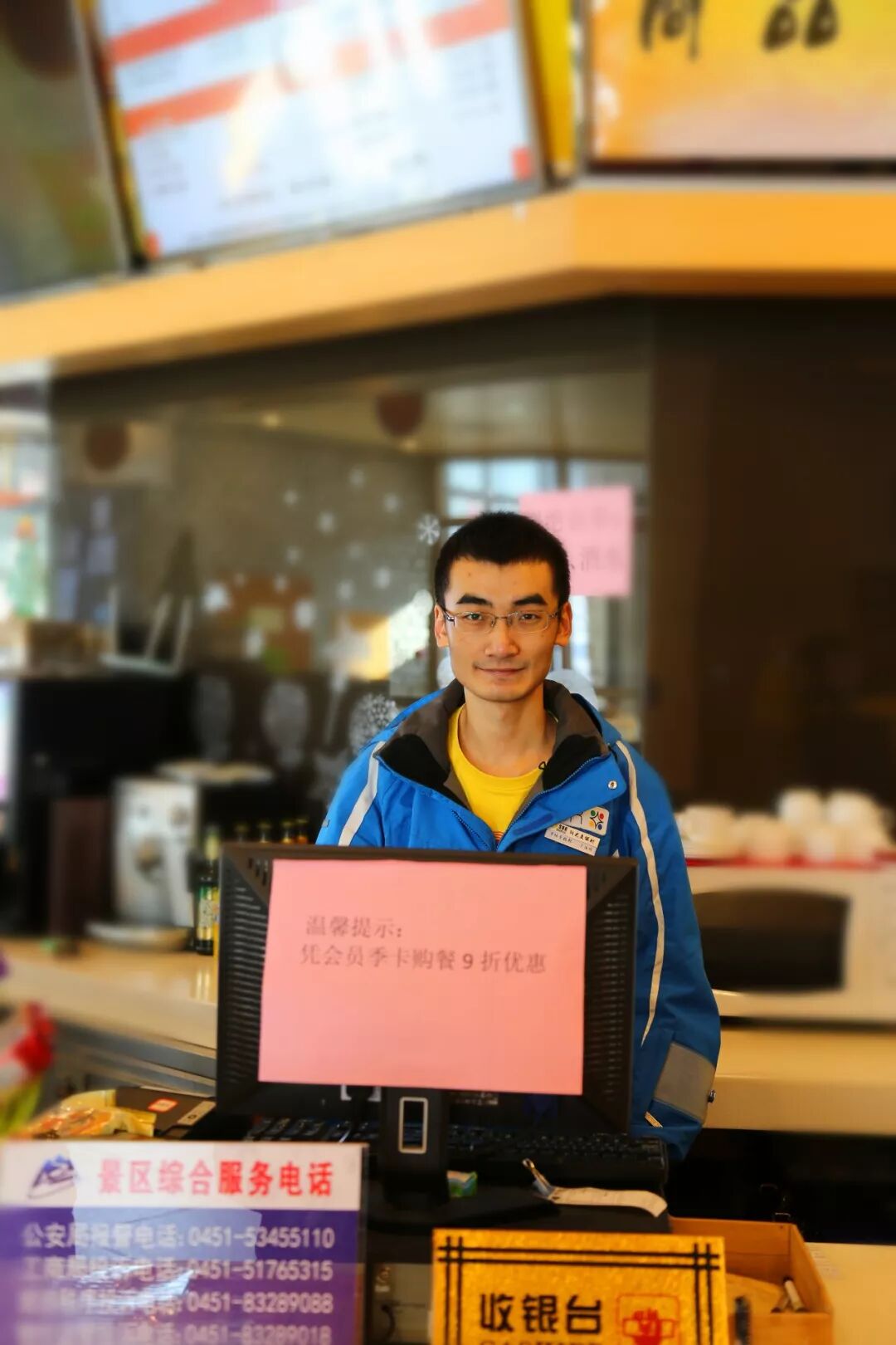 为了更直观的感受他们的工作,我们在拍摄的所有影像素材中,特意挑选了一个反映他们实际工作的简短的小视频(拍摄当天,姜环宇同学休息,便于拍摄,征得企业同意后,把他的工作地点临时调整到滑雪大厅的收银室)——