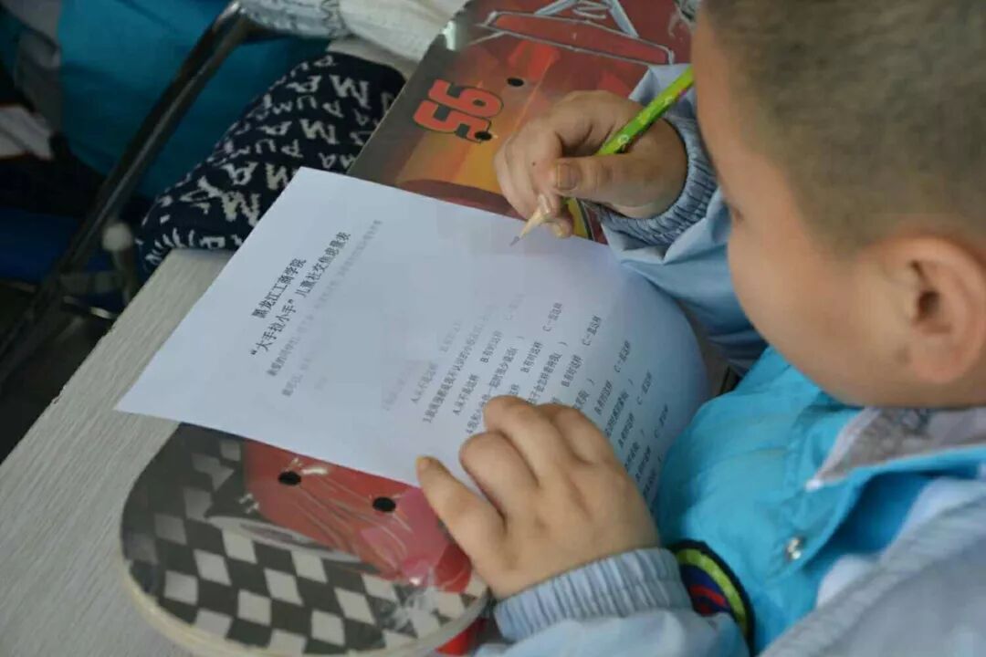 启动仪式结束后,校团委书记张玉娜、心理健康教育中心吕文婷和团委干事王佳对肇东市四明小学的留守儿童进行了心灵关爱的问卷调查,并建立心理健康档案。