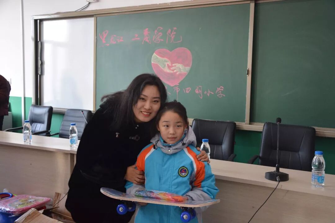 我院青年志愿者们用爱心凝聚起一双双温暖的大手,牵起孩子们一双双冰冷的小手。将一个个爱心包裹传递到孩子们手中,书包、滑板、羽毛球、水晶泥、铅笔、橡皮、笔袋这些实实在在的物资,温暖着每一个孩子的的心。