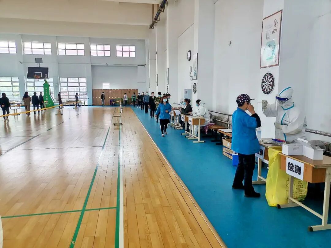 注:学校免费为返校师生做核酸检测,图为组织首批返校教职工接受核酸检测。