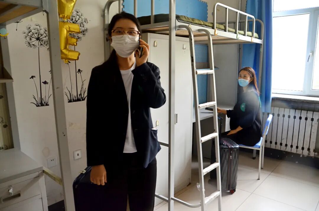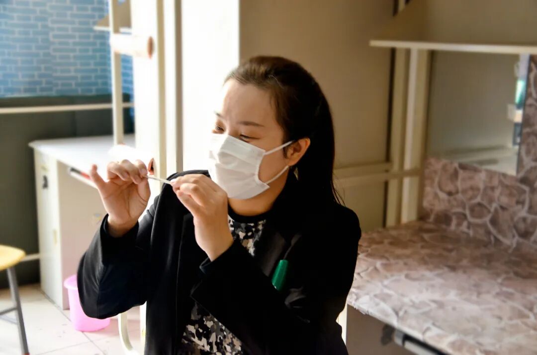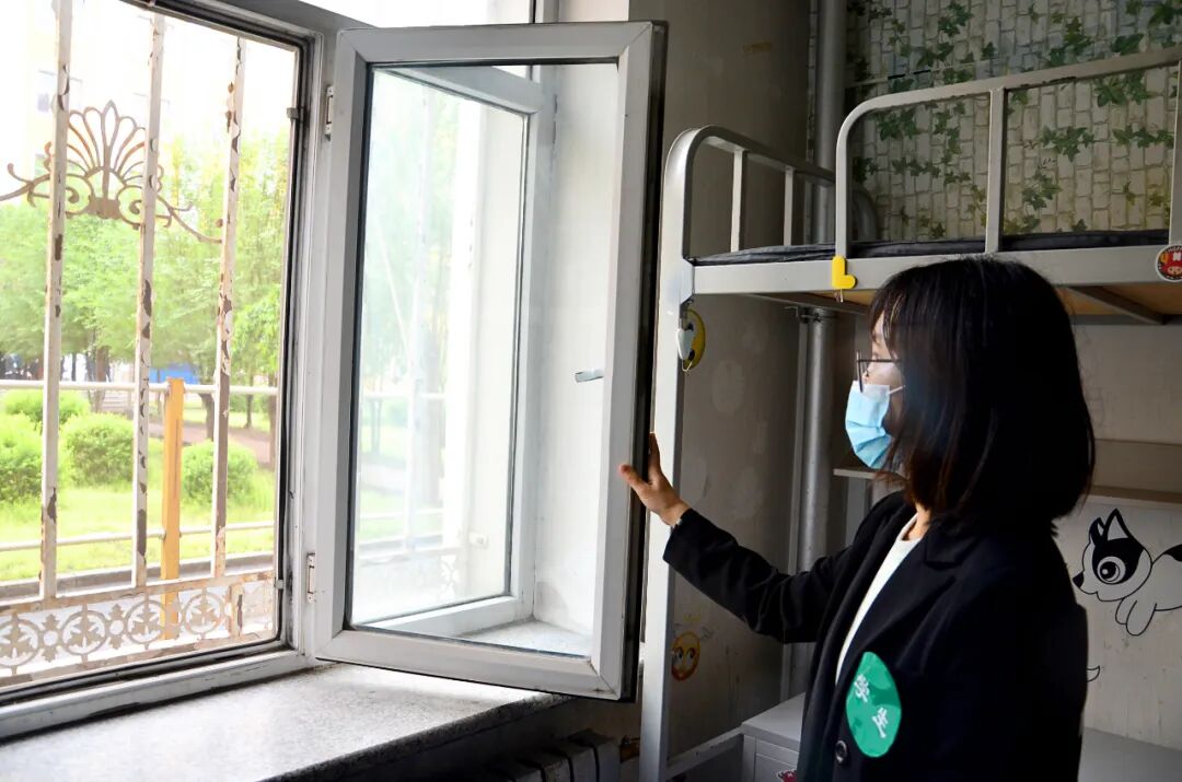在反复排演规范流程细、化规程的同时,学工部门携手后勤部门“统一消毒用品、统一规范作业、统一消毒记录”,对学生宿舍及公共区域每天进行全方位无死角喷洒式消毒2次,开窗通风3次,确保“疫”尘不染,学生拎包入住。