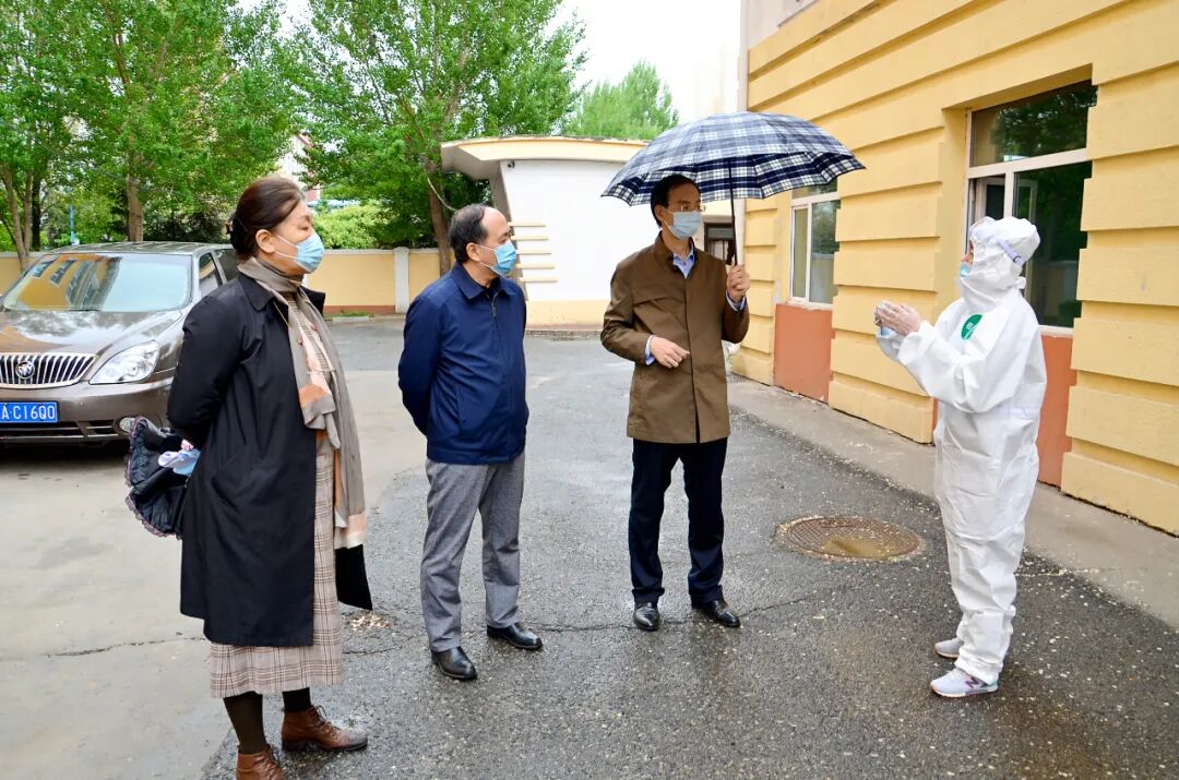 注:学校党政领导深入一线,部署疫情防控和复学返校工作。图为在开展疫情防控模拟演练期间,校党委书记徐德荣、执行校长王利民、党委副书记王晓伟全程观摩指导,适时与工作人员交流,及时反馈情况。